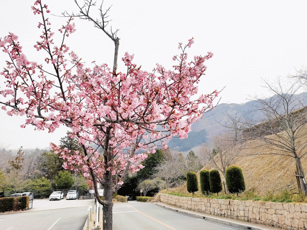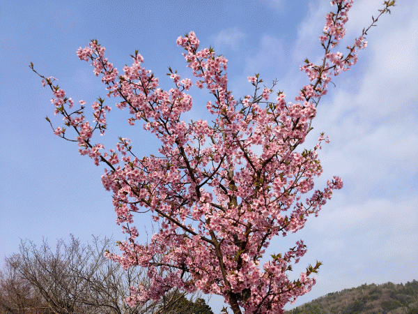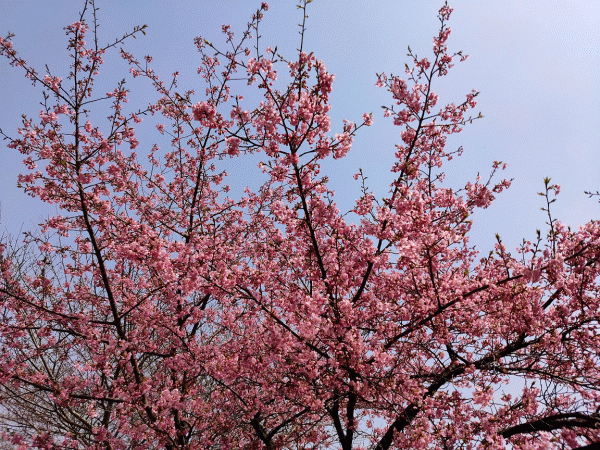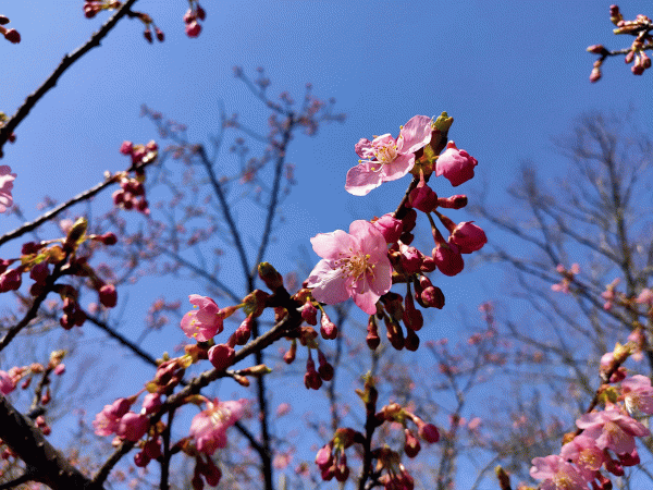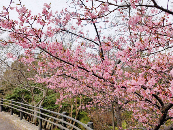 本日は、満開近い涼風区付近の河津桜とオシドリ桜をご紹介。