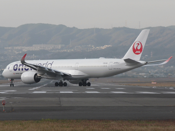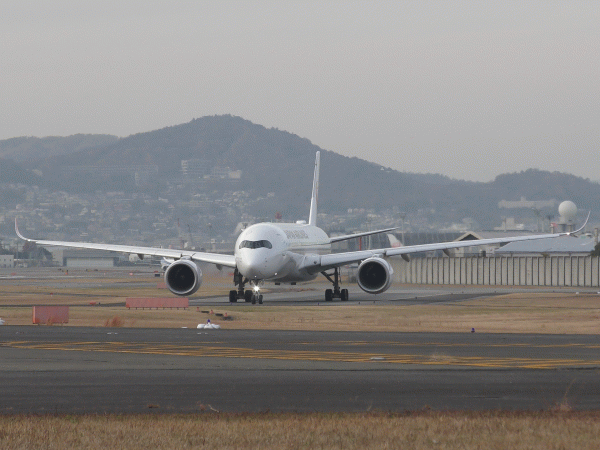 伊丹空港に着陸するエアバスA350
