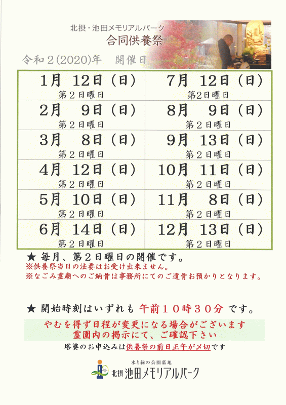 こんにちは!北摂池田メモリアルパークの伊藤です。