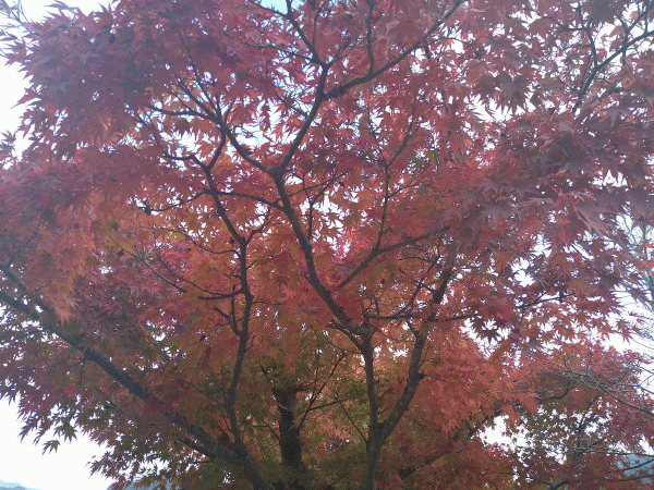 夢咲事務所の近くあある紅葉が一本だけ極めて色が濃く紅葉しております。