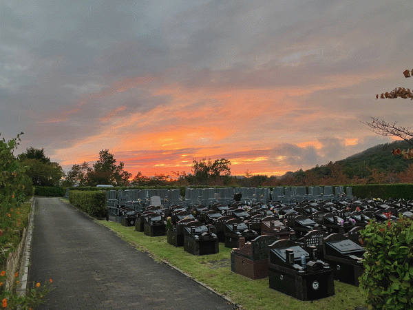 本日は霊園内で撮影した「夕焼け空」の写真をアップさせて頂きました。