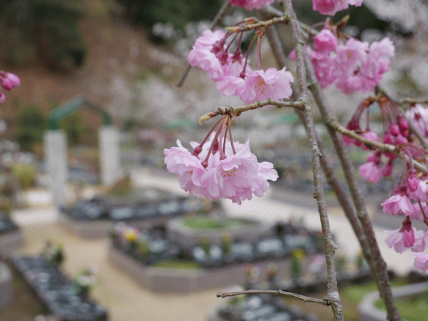 霊園の桜は散り始めています。