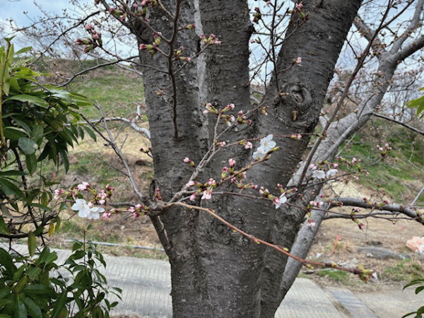 昨日は雨が降り、今日は曇り空ではありますが雨はなく、暖かく過ごしやすい日でした。桜の開花状況