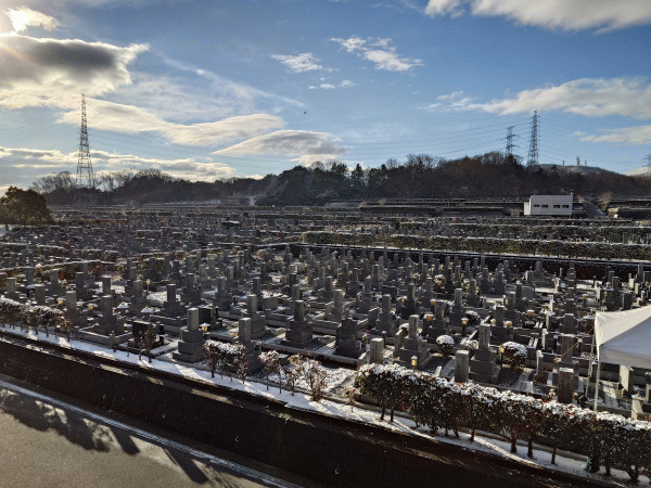2025年1月9日朝の大阪生駒霊園です。