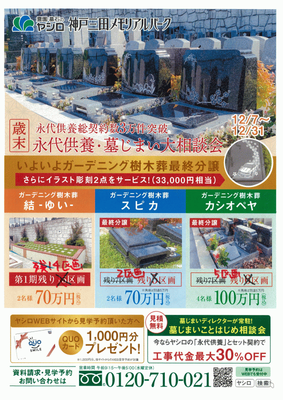 神戸三田メモリアルパーク 西村です。