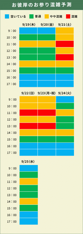 お彼岸期間中の混雑具合を予測しておりますので、