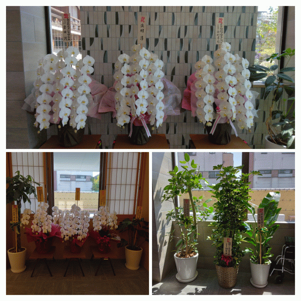 明日のグランドオープンのお祝いのお花や観葉植物が次々と運び込まれてきました。
