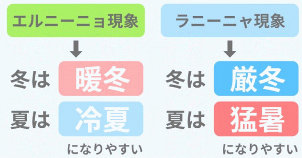 エルニーニョ現象は「夏は冷夏、冬は暖冬」になるそうです。