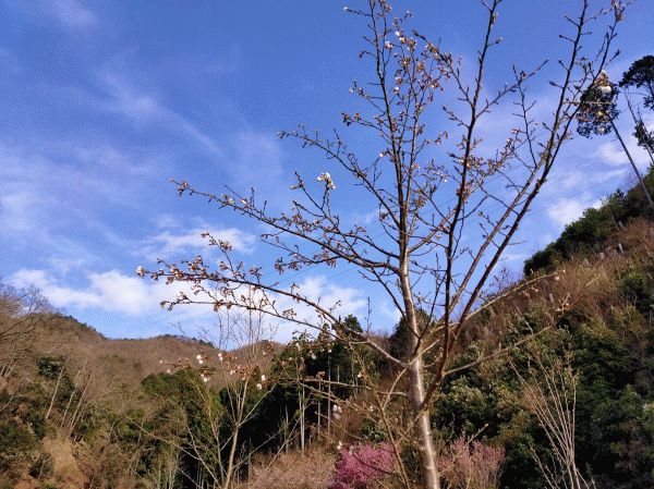 本日は、満開近い涼風区付近の河津桜とオシドリ桜をご紹介。