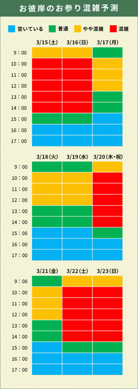 お彼岸期間中の混雑具合を予測しておりますので、
