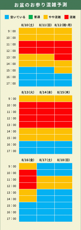 ※天候や、交通事情などにより、混雑状況が変わりますことをあらかじめご了承ください。