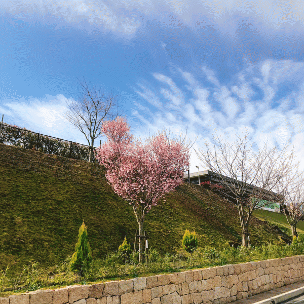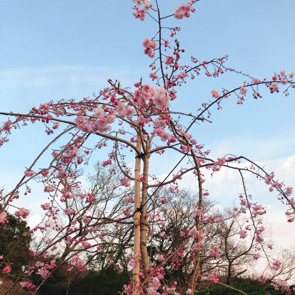 園内の駐車場から見て頂くとかわいいピンクの桜が見えます!!