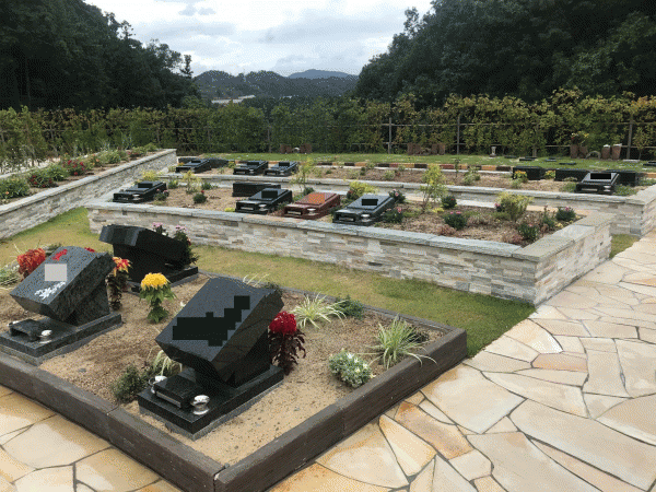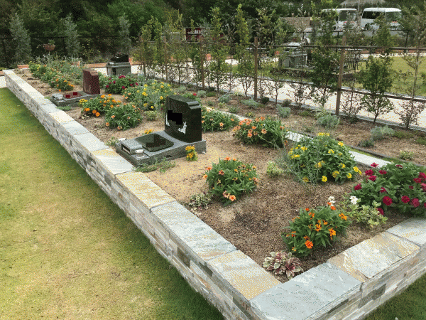 花壇の上に墓石を建立し、緑や花々に囲まれた区画となっております(●^o^●)
