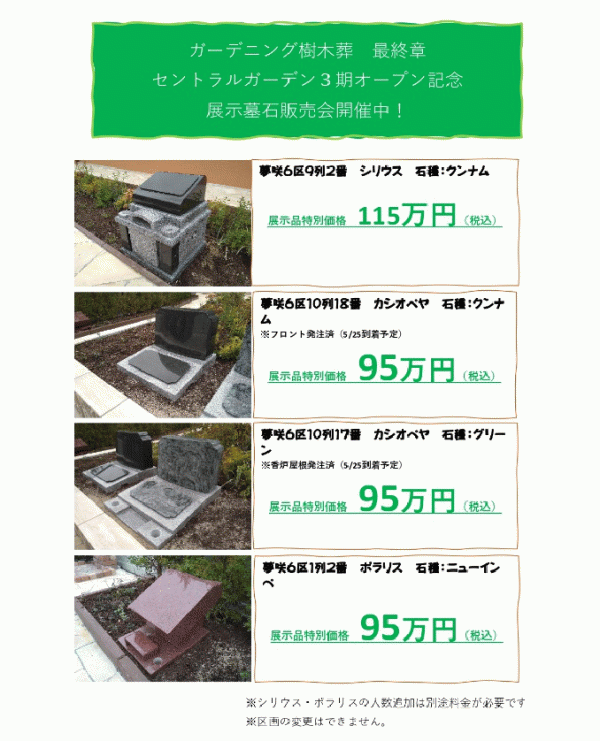この機会に是非、良い場所、お好きな墓所をお選びください!!
