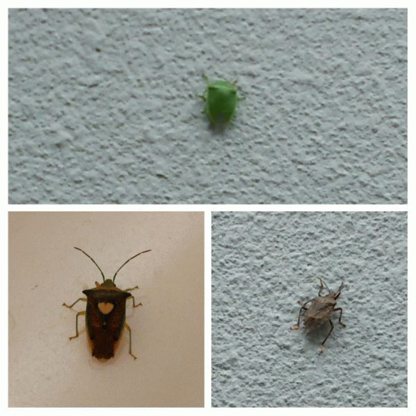 園内では茶色いカメムシが多いのですが、我が家の近くは緑色のカメムシをよく見かけます。