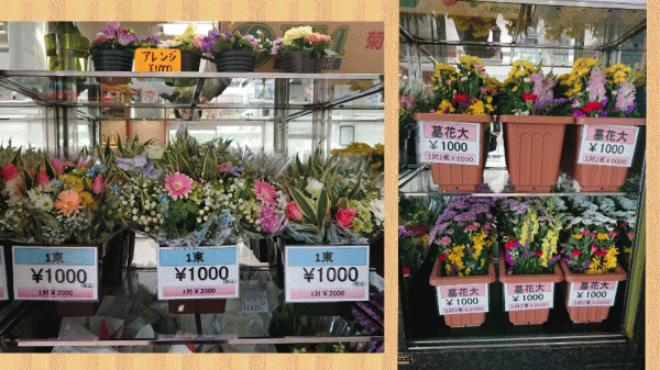 朝一番に墓花が入荷されてきました♪