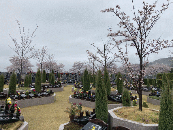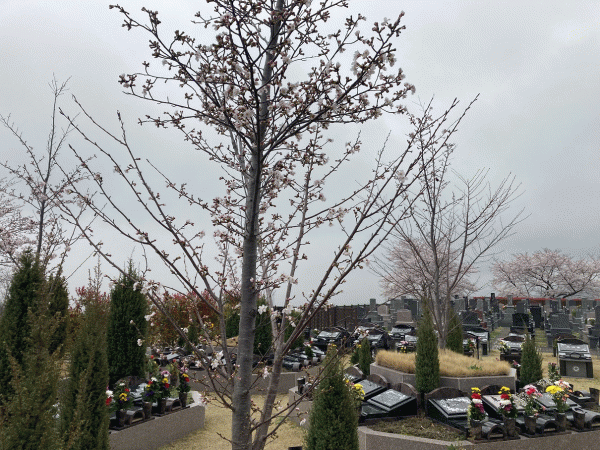 本日の霊園内の桜の状況になります。樹木葬エリアも少しずつ桜の花が咲いてきました。もう少しで見頃を迎えます。