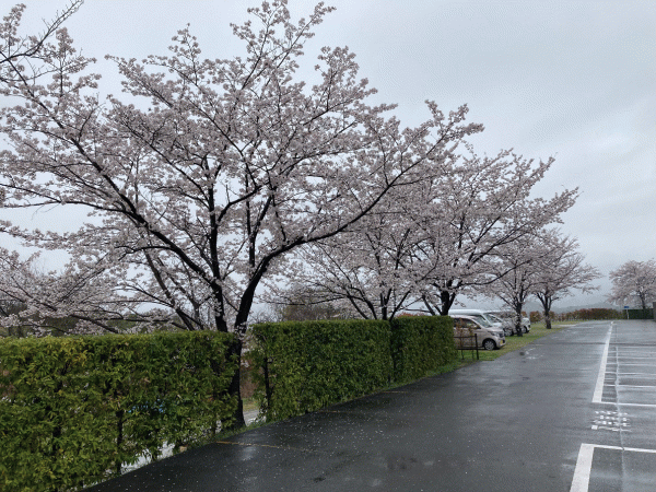 本日は園内は雨模様です。最近天気が良かったことと、気温が高かった為か、外周道路の桜が五分咲きになってきました。もう少しで満開になると思います。