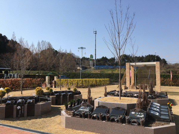 当霊園内から、関西サイクルスポーツセンターが見えます。今日は家族連れが多かったのか子供の声が園内まで聞こえてきます。泉州に在住の人は一度は来たことがあるほど有名なレジャースポットです。変わり種自転車がメインで夏はプールにキャンプも出来ますので子供連れで来られる人が多いですよ。