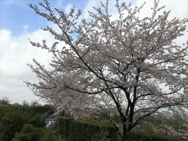 外周道路にある桜の木は、既に満開を超えて、桜吹雪になっています。今度の雨で葉桜になるかなぁ。
