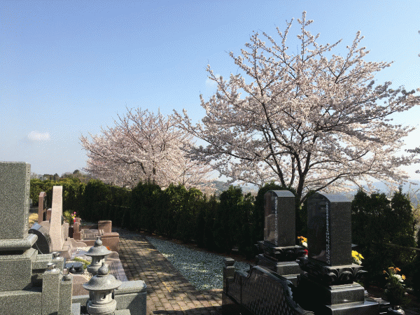 外周道路の桜はもう満開になり、散り始めています。今週一杯が見頃になると思われます。まだ間に合います。是非とも当霊園の桜を見てください。樹木葬エリアも空き区画も御座いますので、今週末花見がてらのご来園をお待ちしております。