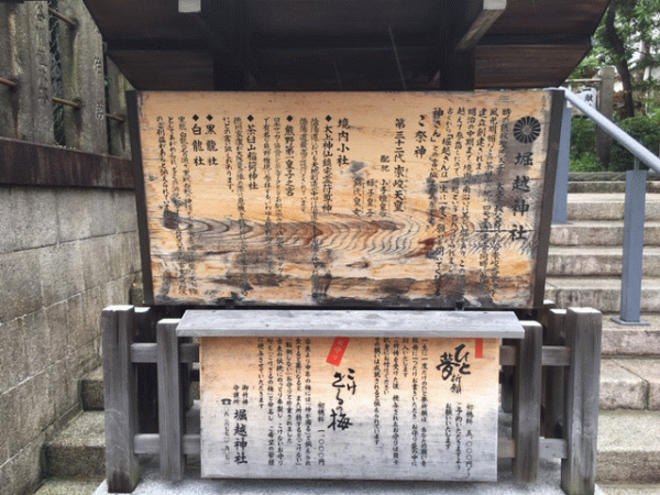 『堀越さんは一生に一度の願いを聞いてくれる神さん』として地元商店とか企業の皆さんから商売繁盛の神様として信仰を集める神社です。