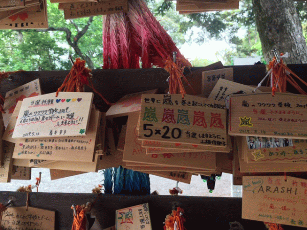 嵐のファンが沢山参拝されており、絵馬にはコンサート等のチケットが当たるようにとの願い事が沢山書かれていました。