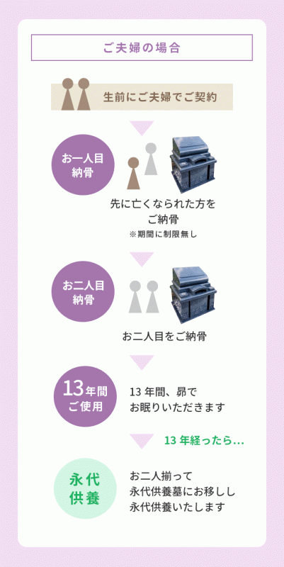 最後の方の納骨から13年後に揃って永代供養墓「なごみ霊廟」にお移ししご供養する後々の負担がない期限付きのお墓です。