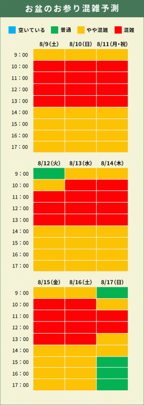 ※天候や、交通事情などにより、混雑状況が変わりますことをあらかじめご了承ください。