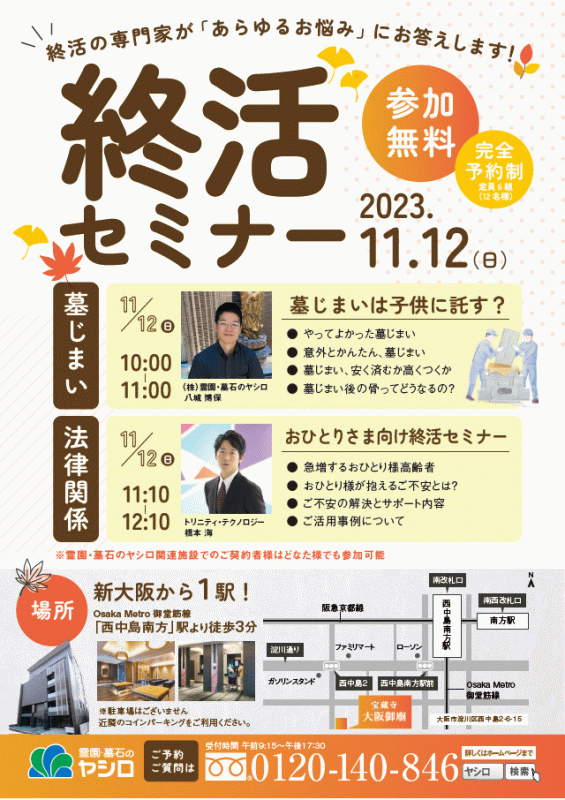 【ご参加無料】11/12 終活セミナー開催のお知らせ