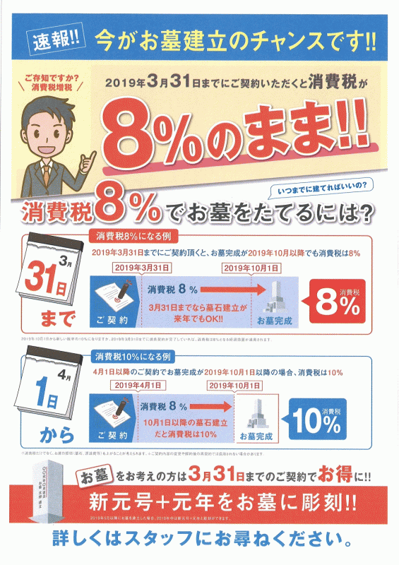 3月末までにお墓を購入(契約)しておくとお得になります!!