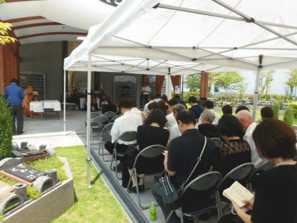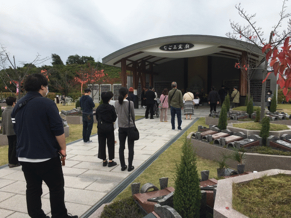 曇り空の中30人程度の参列の方がいらっしゃいました。