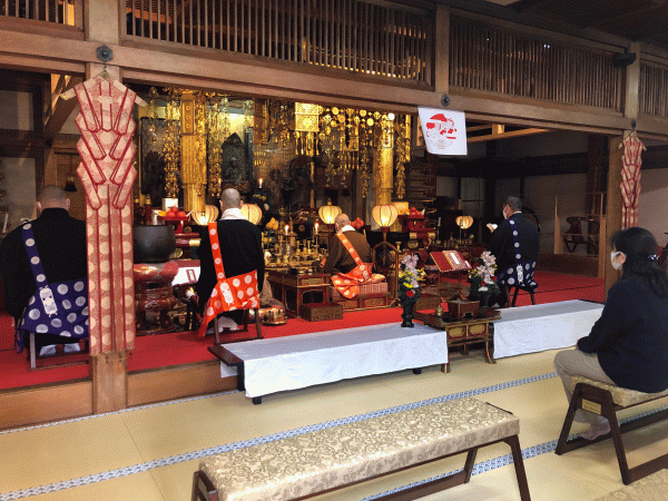 国分寺管長をはじめ、役僧の皆様が本堂にて