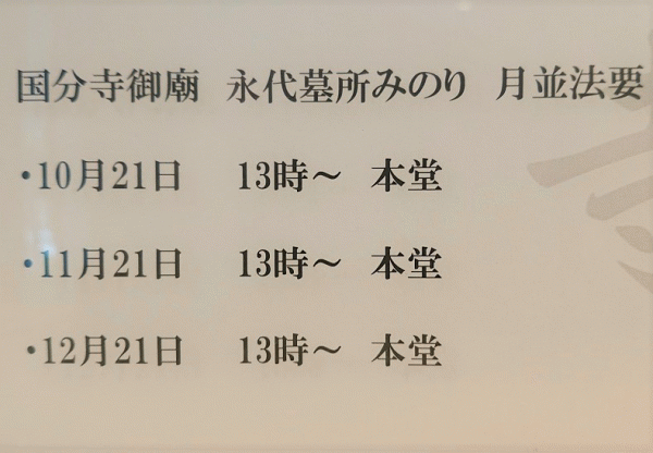 国分寺御廟/永代墓所みのり の月並法要が執り行われました