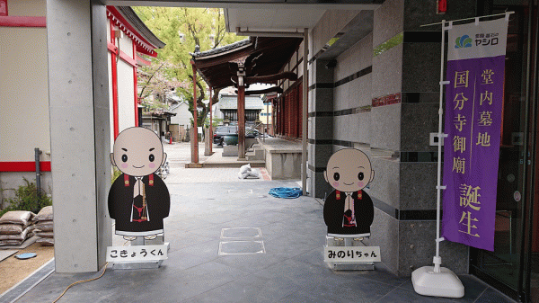 国分寺御廟の入口で皆様のお越しをお待ちしています。