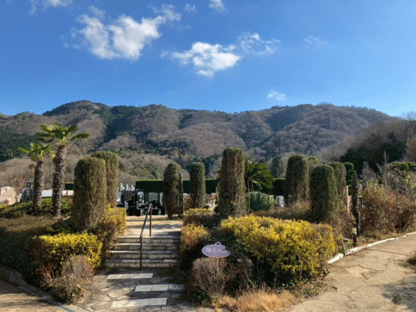 多くの山に囲まれた霊園