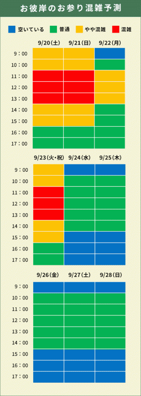 ※天候や、交通事情などにより、混雑状況が変わりますことをあらかじめご了承ください。