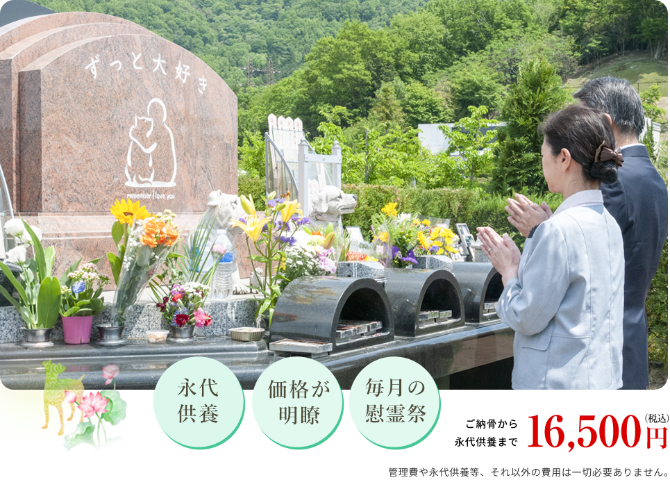 大切なペットのご遺骨を、真心をこめて合祀供養する合同慰霊碑です。
