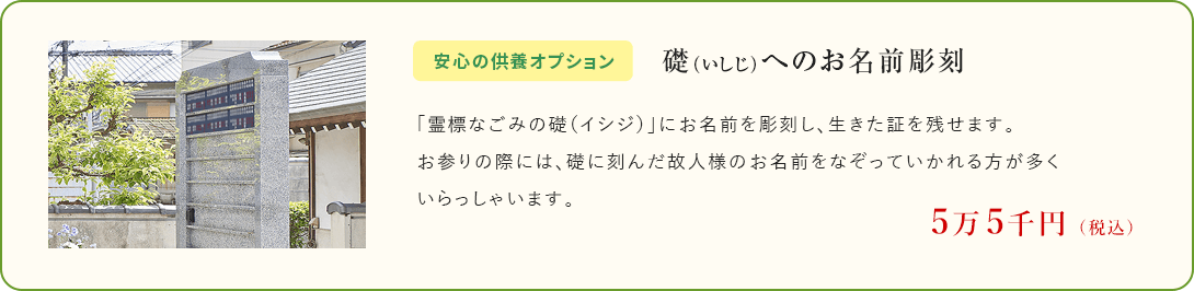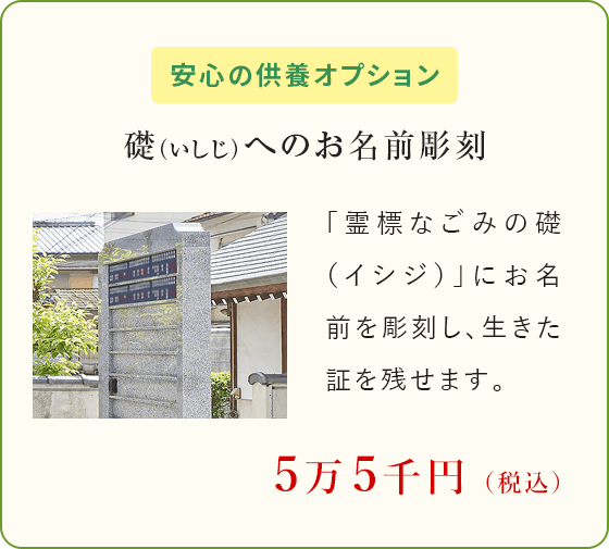 なごみ霊廟横の礎(いしじ)に、お名前を彫刻することで、生きた証を残すことができます。